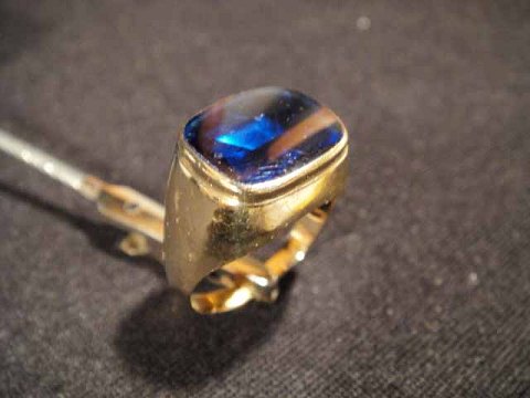 Herre guldring med blå turmalin. str.61 D. 20 mm. Guld 8k HSHS