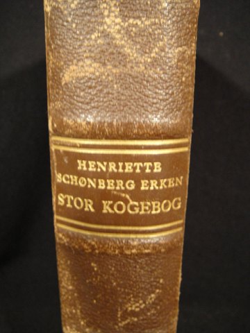 ERKEN, FRU HENRIETTE SCHØNBERG: Stor kogebog for større og mindre husholdninger. Aschehoug 1946. Illustr. halvlæder. 823s.