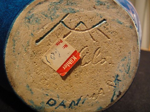 Kähler Bprdlampe i Blå glasur. Højde: 27 cm + fatning = ialt med fatning 44 cm