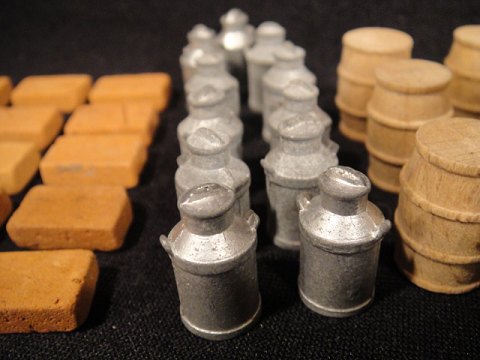 Diverse tekno øl kasser, mælkejunger, tønder, muresten,til tekno biler