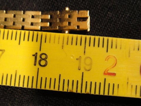 5 rækker. Længde: 19,5 cm ,Bredde: 4,9 mm, Tykkelse: 1,5 mm, Vægt: 12,3 gram.