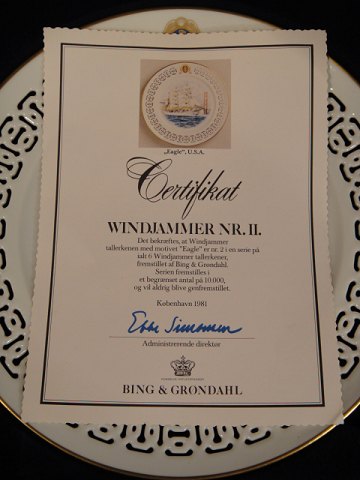 Scene Full-Rigged "Eagle", U.S.A. is no 2 in a series of 6 pcs. windjammer Plates / plate. No. 8867/633 Manufactured by Bing & Grondahl.