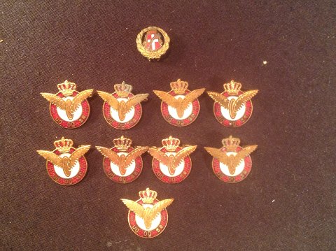 Emblem with enamel. 9 pcs. DSB with text OUT AND SEE. sold 1 pcs. DBR Denmark Bilruter