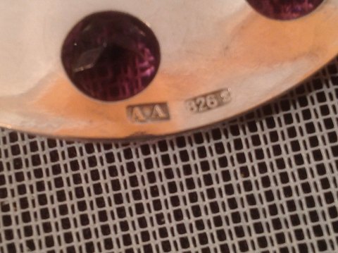 med stor Amatyst i midten Ø 24,5 mm, og omkranset af 8 mindre amatyster Hver på Ø 11 mm.