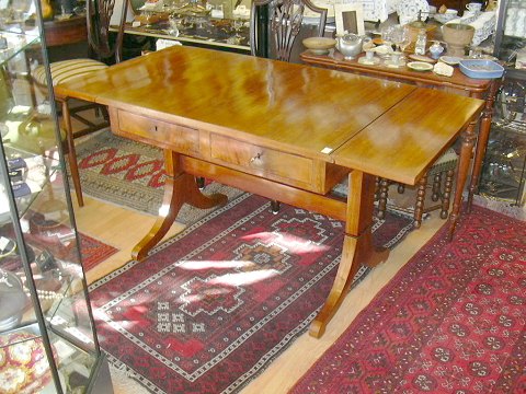 Senempire bord i mahogny med skuffer og to klapper som kan slås op i siden 1900 talles begyndelse