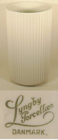 Stor Lyngby vase med rilet mønster hvid H: 30,5 cm Ø 16,5 cm Sjælden størrelse