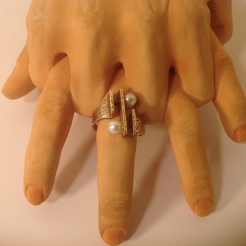 Guldring med perler.