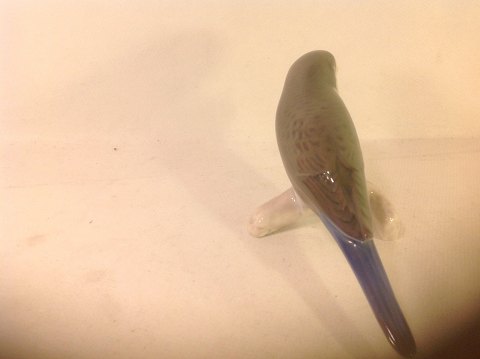 Grøn undulat med blå halefjer.