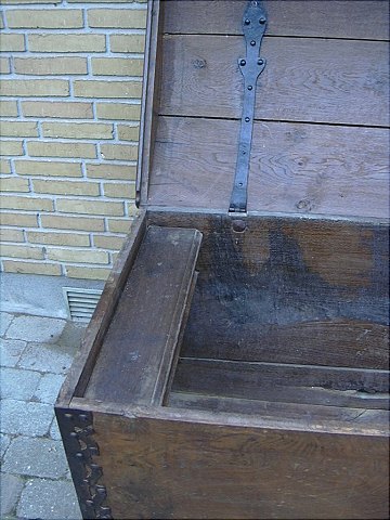 Flot Barok Kiste i egetræ med jernbeslag B:67 cm L:145 cm H:80 cm