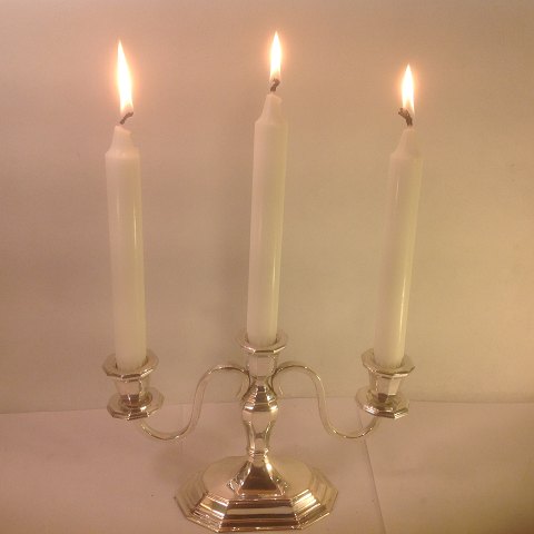 Sølv kandelaber med tre arme.