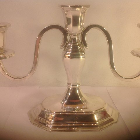 Sølv kandelaber med tre arme.