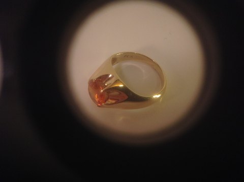 Gold ring with a brilliant-cut fire opal.