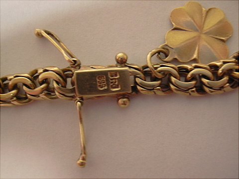Bismark armbånd af 14k. guld. B.4,45 cm. L. 20 cm. 13g Armbåndet er med et firkløver blad