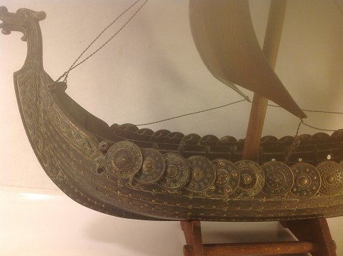 Wikingerschiff aus Bronze. Mast und Ständer aus Holz. Hergestellt von Iron Art, Kopenhagen.