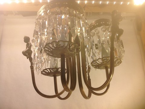 Fransk Prisme lysekrone med 6 putti i bronze.