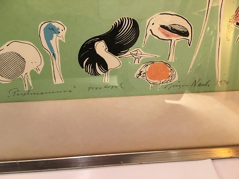 Danmark - Sverige: Fuglemor . Farvelitografi.( Prøvetryk). Signeret.: Jørgen Nash 1970