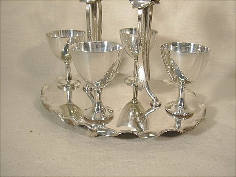 Engelsk æggebæger med holder og skere i pletsølv flot stand