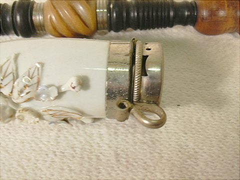Flot gammel porcelæns langpibe med sølv beslag og blomster dekoration.