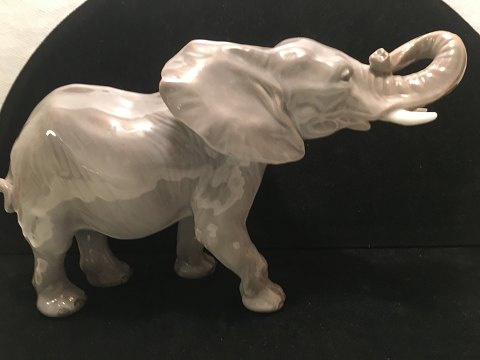 Stor Flot glad elefant med løftet snabel.