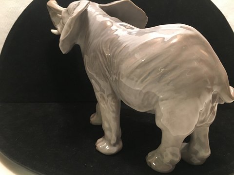 Stor Flot glad elefant med løftet snabel.