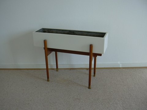 Blomster kumme med teaktræs stel og ben med messingsko indsatsen er af zink