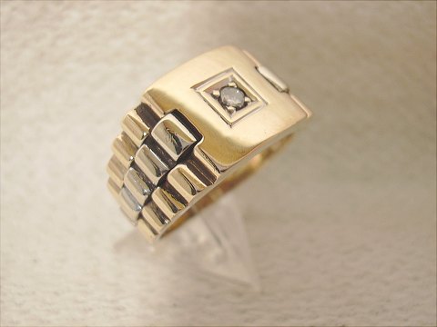 Guldring 14k rød og hvidguld 585 med brilliant 0,04 ct