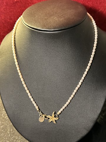 Ægte perlekæde ,med forgyldt sølv lås i 925 sammen med sølv vedhænge havstjerne i 925 s
