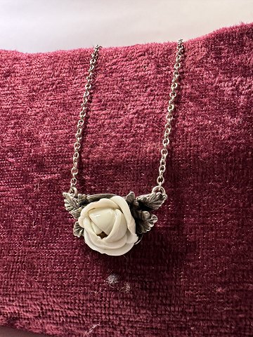 Sterling silver 925s. Vintage silver Necklace with porcelain Rose.