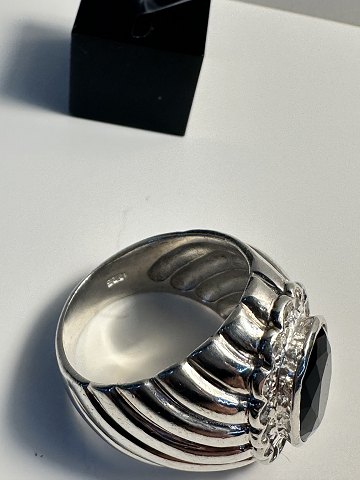 Men's sterling silver ring in 925s. Large oval blue sapphire stone and with 15 white sapphire stones. Size 69 Stamp 925s