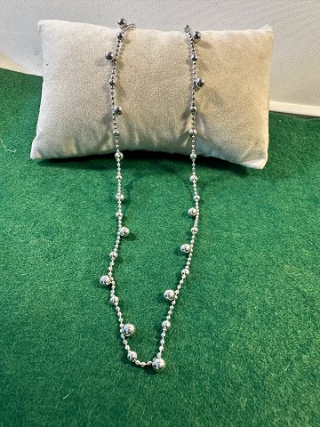 Sølvkuglens Dans er ikke bare en halskæde – hun er en fortælling om tidløs skønhed. Bestående af blanke, sølvfarvede kugler i forskellige størrelser, placeret med ynde langs en fin kæde, bærer hun både minimalismens charme og det legende spil i designet. Hver kugle er som en lille drøm, fanget i metal, og tilsammen skaber de et harmonisk rytmisk mønster – som musik, man kan bære.