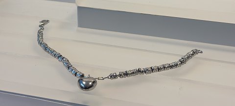 Længde 18 cm armbånd har sølv hjertet i midten og sølv kugler hele rundt .