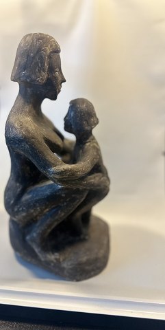 En rørende og solid figur i uglaseret stentøj forestilleende en mor i tæt favntag med sit barn .