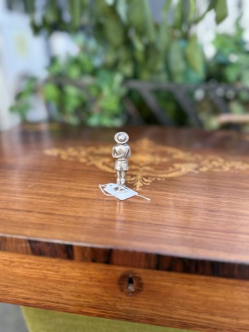 Vintage nålebeholder i sølv , formen en lille figur ( mand i folkedragt , fra 1800 tallet H 5 cm B 1,30 cm