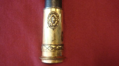 Antik fransk Embedsmands kårde fæste i forgyldt og med perlemorsbesat fæste og dekoretet i klinge