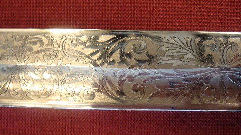 Flot Dansk Embedsmands sabel fæste i forgyldt og med perlemorsbesat fæste og dekoretet i klinge