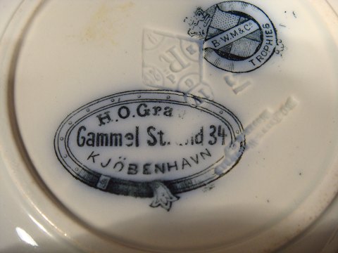 den Danskes importør H.O.Grave Gl.strand 34 Kjøbenhavn han åbnede sit firma i 1855, og blev hurtigt byens største handlende med porcelæn og fajance og netop fra Antik tallerken