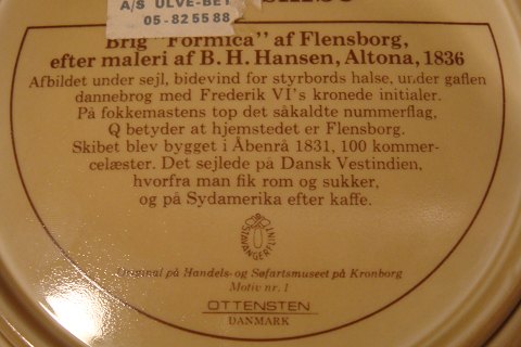 Skibsplatte " Big formica " fra flensborg. sejlede på Dansk vestindien