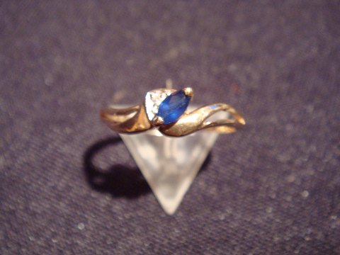 Ring med blå safir ca 0,40 ct og hvide zirkoner