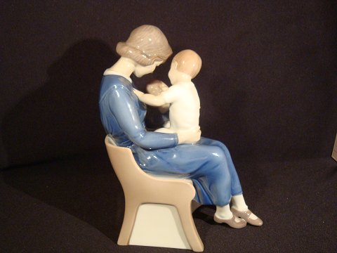 en lykkelig familie mor sidder i en stol og hygger sig med sine to børn.