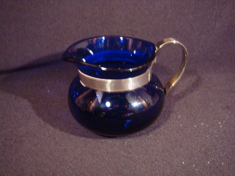 Flødekande i blå glas med forsølvet hank Holmegaard