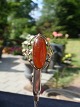 med stor carbonslebet amatyst L: 2,5 cm B:1,6 cm Højde: 1,5 cm