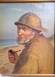 Maleri Fiskere ved stranden.