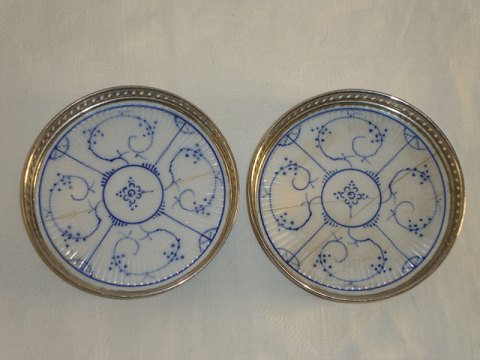Flaske-glasbakke, riflet Musselmalet, Villeroy & Boch, diameter ca. 10 cm. højde 2 cm. Derudover to med revner i porcelænet, se ekstra foto.SOLGT