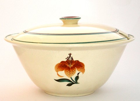 Jenny, Aluminia fajance produceret i perioden 1937-67, luftmalet, designet af Niels Thorsson. Sovseskål. Diameter 15 cm. Højde 8,5 cm. Pris: 150 kr. stk. Lager: