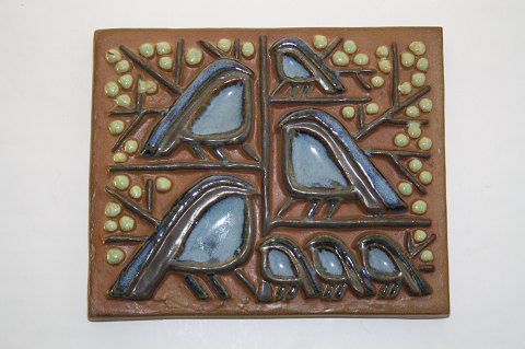 Michael Andersen væg relief designet af Marianne Starck. Motiv blåglaserede fugle. 21x17 cm.solgt