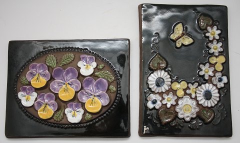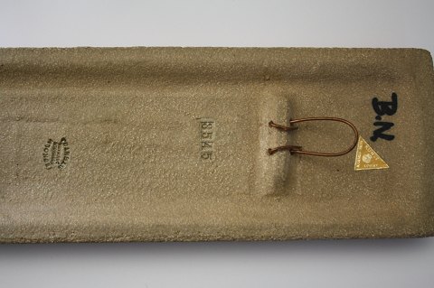 Søholm, stentøjsvægrelief designet af Joseph Simon måler 40x12 cm. Motiv Trane på blågrøn glasur. solgt.
