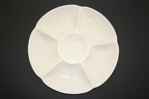 Dorrit, Aluminia. Smalkant stel fra 1952-66. Beige fajance med hvid kant. Designet af Nils Thorsson med rundovale former og smalle faner.