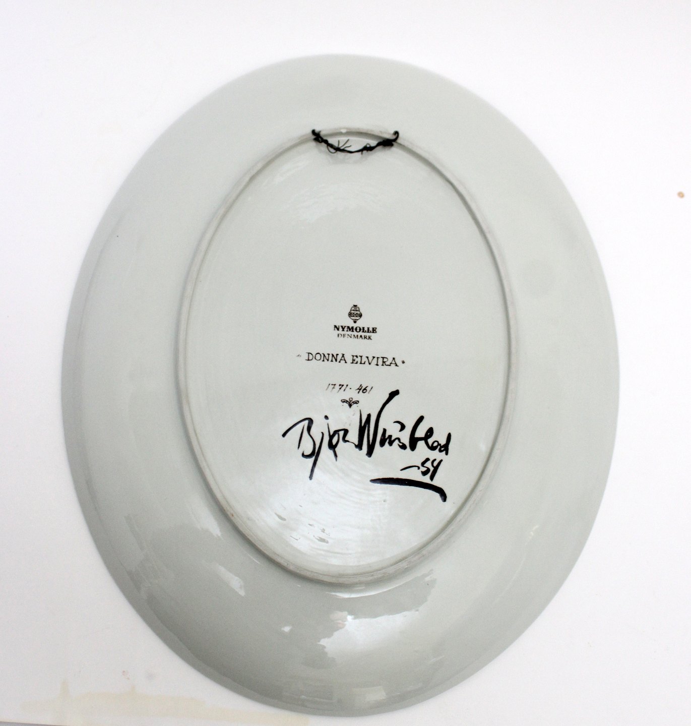 Nymølle, Denmark, Bjørn Wiinblad, Donna Elvira, ovalt fad/platte. Nr. 1771-461. 34 x 28 cm. Flot stand. Pris: 500