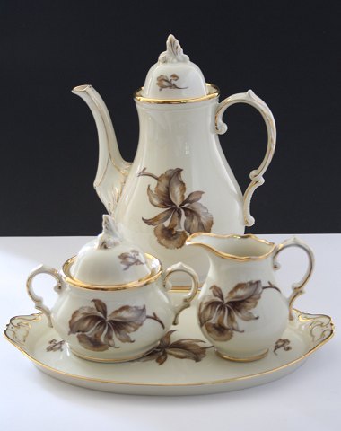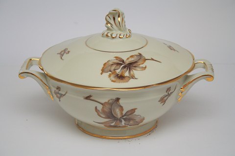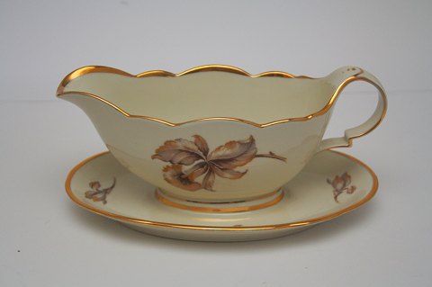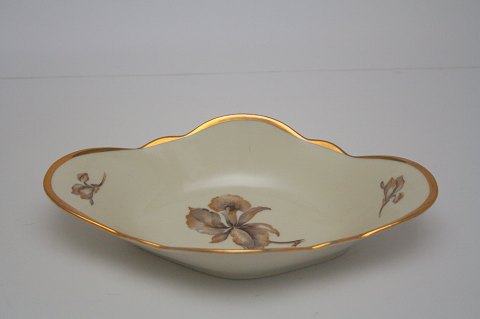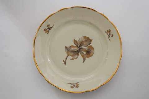 Kjøbenhavns Porcellains Maleri, cremefarvet porcelænsstel Dresden med guldkanter, dekoreret i 1958 med en brun Orkidé. Perfekt stand.