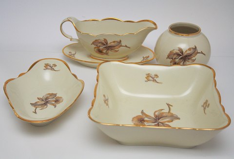Sovsekande, kartoffelskål, småkagefad, vase, Brun Orkidé, Kjøbenhavns Maleri